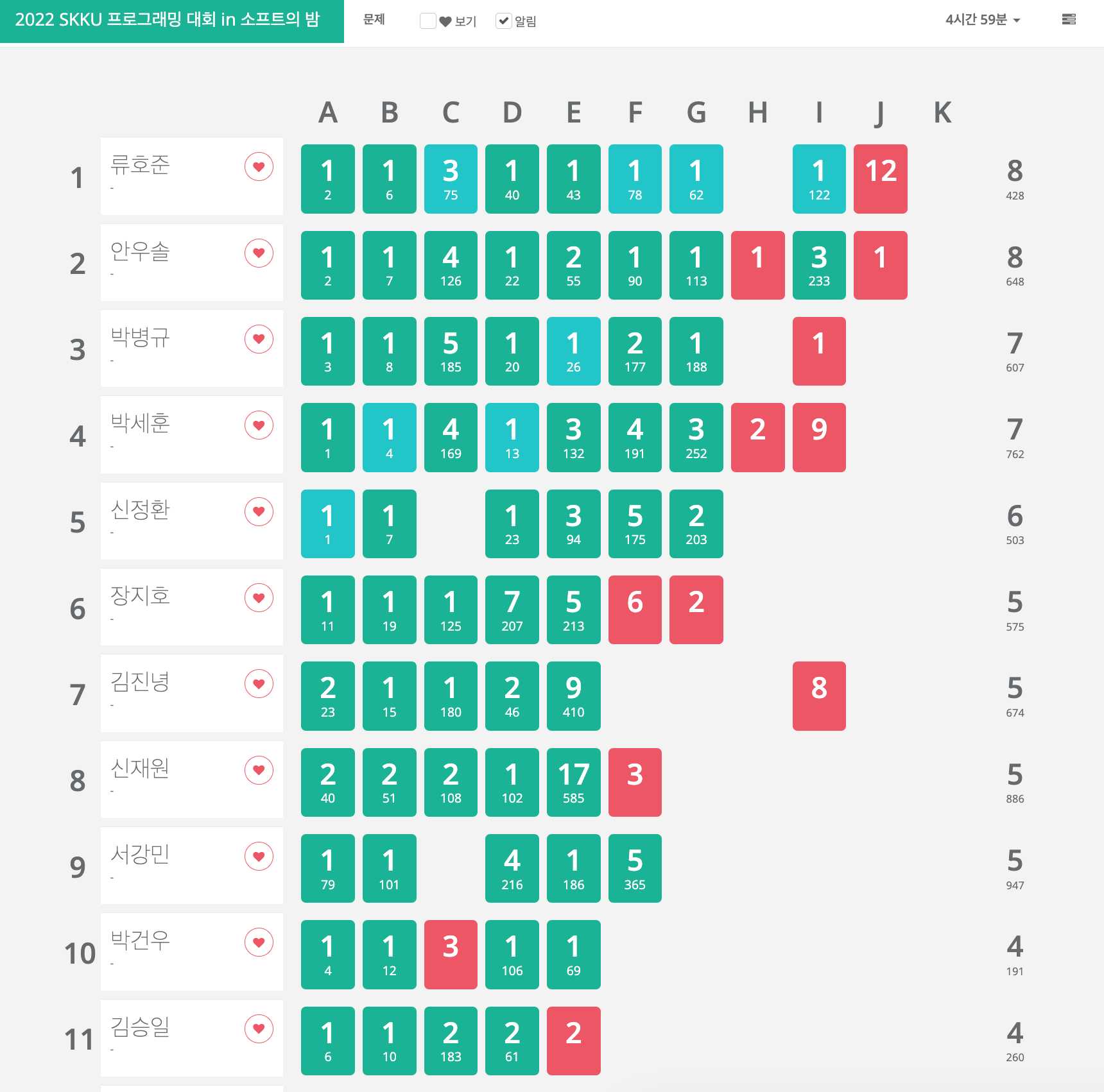 그래도 올해 초에 참가했던 대회보다는 한 문제 더 풀었다.