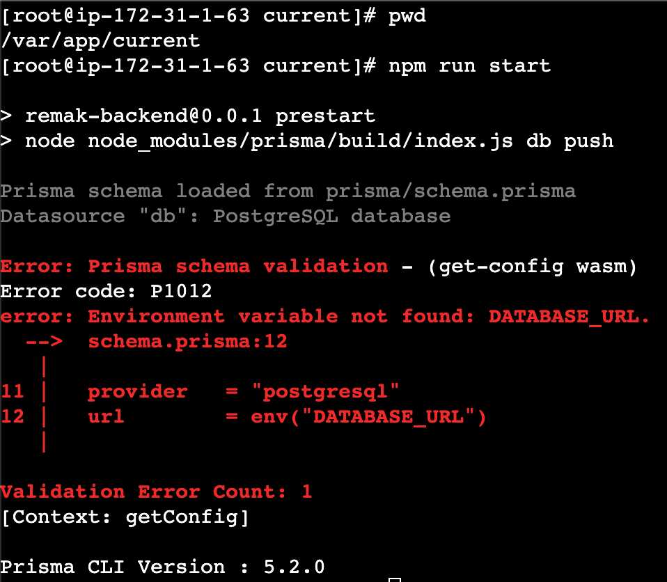 prisma db 설정 문제로 EC2에 접속하여 직접 npm run start를 하려고 했는데 환경 변수가 주입되어 있지 않았다.