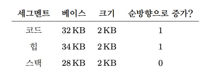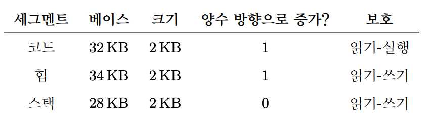 세그먼트: 특정 길이를 가지는 연속적인 주소 공간