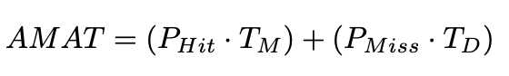 캐시 히트와 미스이 횟수를 안다면, 프로그램의 평균 메모리 접근 시간 (Average memory access time, AMAT) 을 계산할 수 있다.