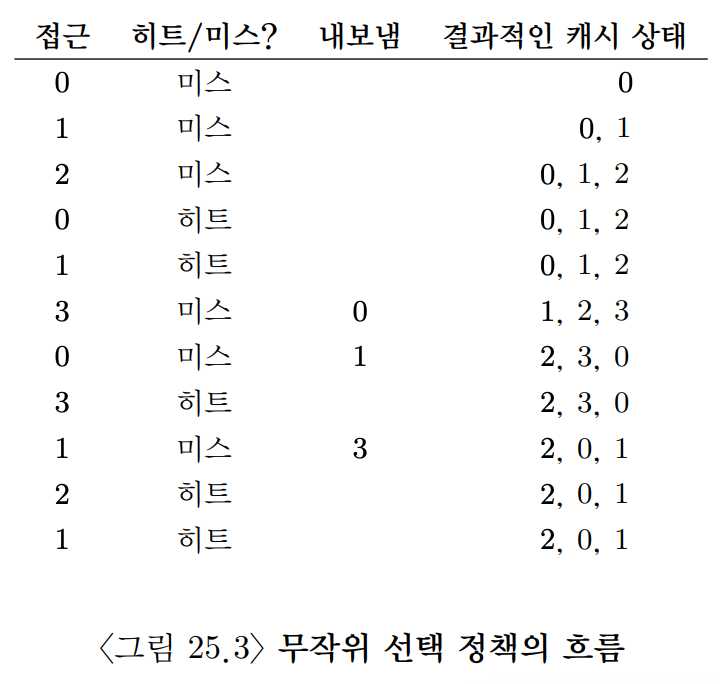 이 방식은 메모리 압박이 있을 때 페이지를 무작위로 선택하여 교체한다. FIFO처럼 구현하기 쉽지만 내보낼 블럭을 제대로 선택하려는 노력을 하지 않는다.