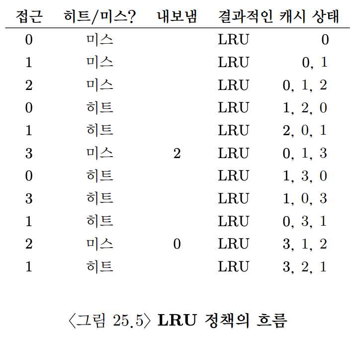 두 경우 모두 LRU는 과거 정보를 활용하였고, 결과적으로 이후의 참조들에서 히트가 발생하였다는 것을 보면 결정이 옳았다는 것을 알 수 있다.