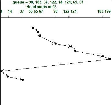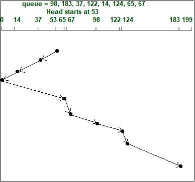 초기에는 이 방법을 사용했다. 트랙을 기준으로 I/O 요청 큐를 정렬하여 가장 가까운 트랙의 요청이 우선 처리되도록 하였다. 예를 들어, 현재 헤드가 안쪽 트랙에 위치해 있고, 가운데 트랙의 섹터와 바깥 트랙의 섹터에 대한 요척을 받으면, 가운데 트랙의 요청을 먼저 처리하고, 완료된 후 바깥 트랙의 요청을 처리한다.