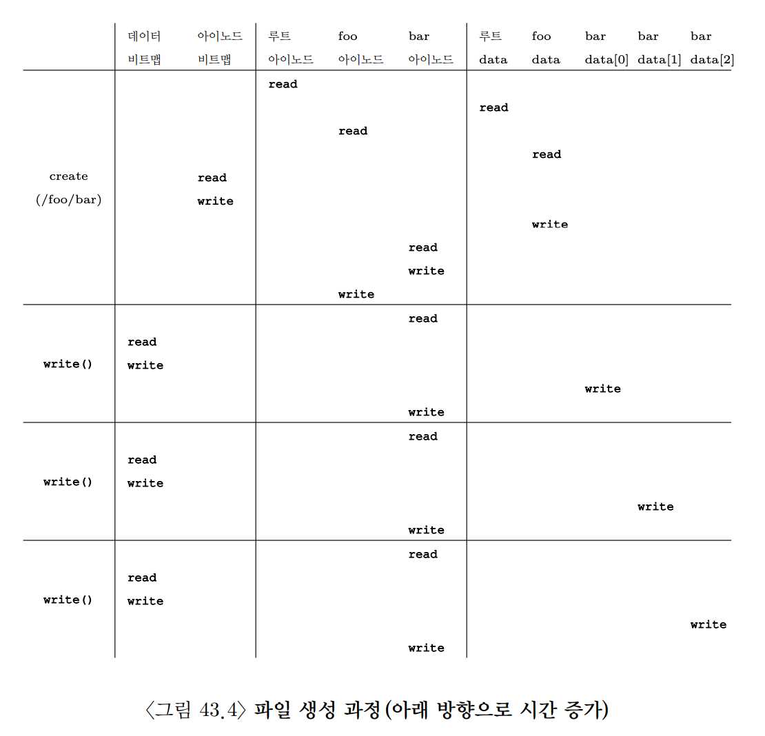 그러므로 파일에 대한 쓰기 요청은 논리적으로 5번의 I/O를 생성한다.